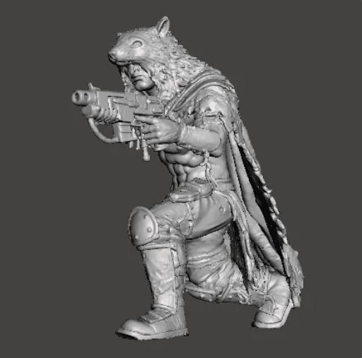Ratskin Ganger – Crouching with Gun (STL)